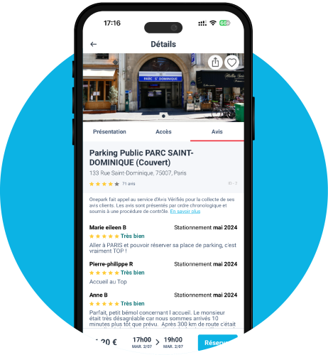 Consultez des milliers d'avis laissés par nos clients et fiez-vous à leurs expériences pour vous garer aux meilleurs endroits.